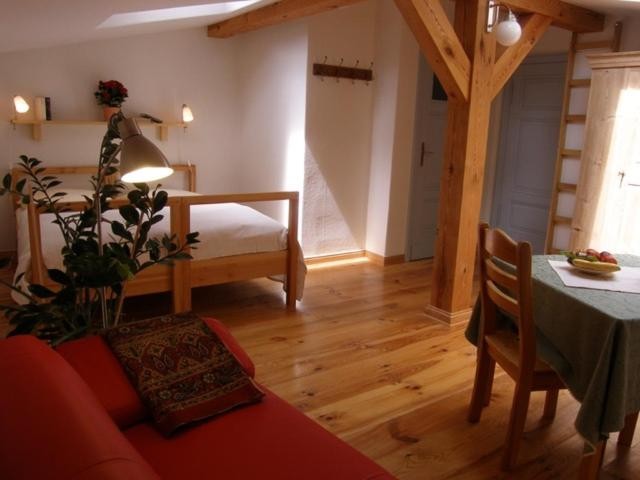 Unsere vier Doppel- und drei Einzelzimmer im Obergeschoss des Hauses wurden nach baubiologischen Gesichtspunkten renoviert bzw. eingerichtet. Lehmputz und mit Naturwachsen behandelte Dielenfußböden schaffen ein angenehmes Raumklima. Die Atmosphäre wird durch die individuelle Ausstattung mit Kunstwerken, Antiquitäten und maßgetischlerten Möbeln geprägt.