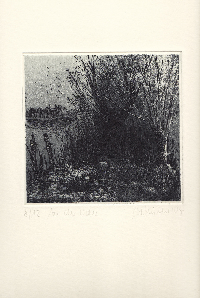Helmut Müller - "An der Oder" - Radierung, Aquatinta - 8/12 - Blattmass: 25,5 x 25,5 cm - Bildmass: 14,5 x 15,2 cm - 2004 - signiert - - 60,- € - - (#hm022)