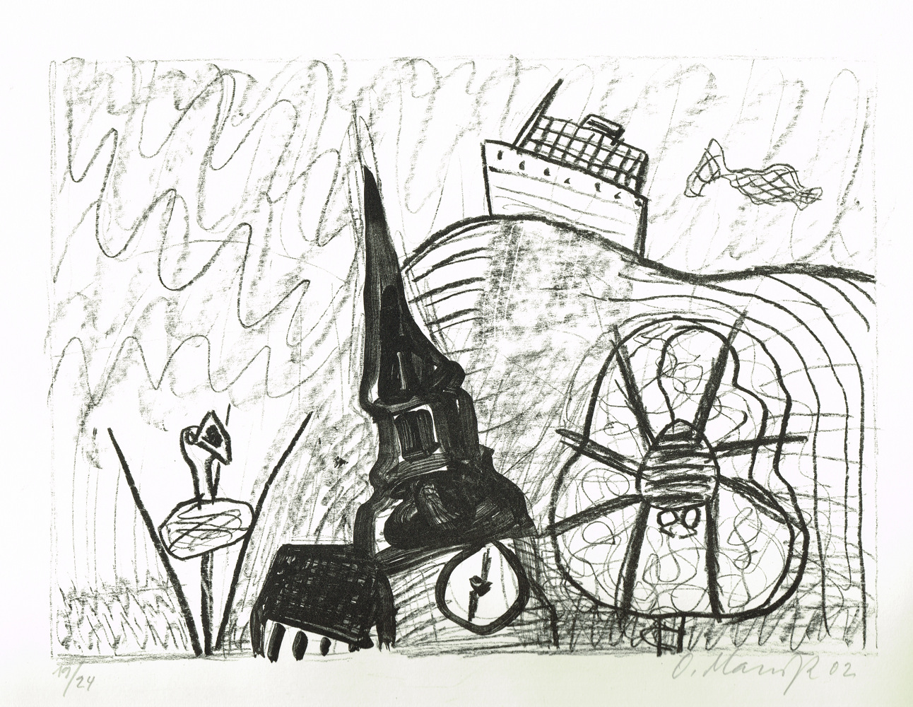 Oskar Manigk - Heimatzeit - Lithografie,Kreide, Pinsel - 19/24 - Blattmass: 39 x 54 cm - Bildmass: 21,5 x 30 cm - 2002 - - Preis auf Anfrage (#om01)