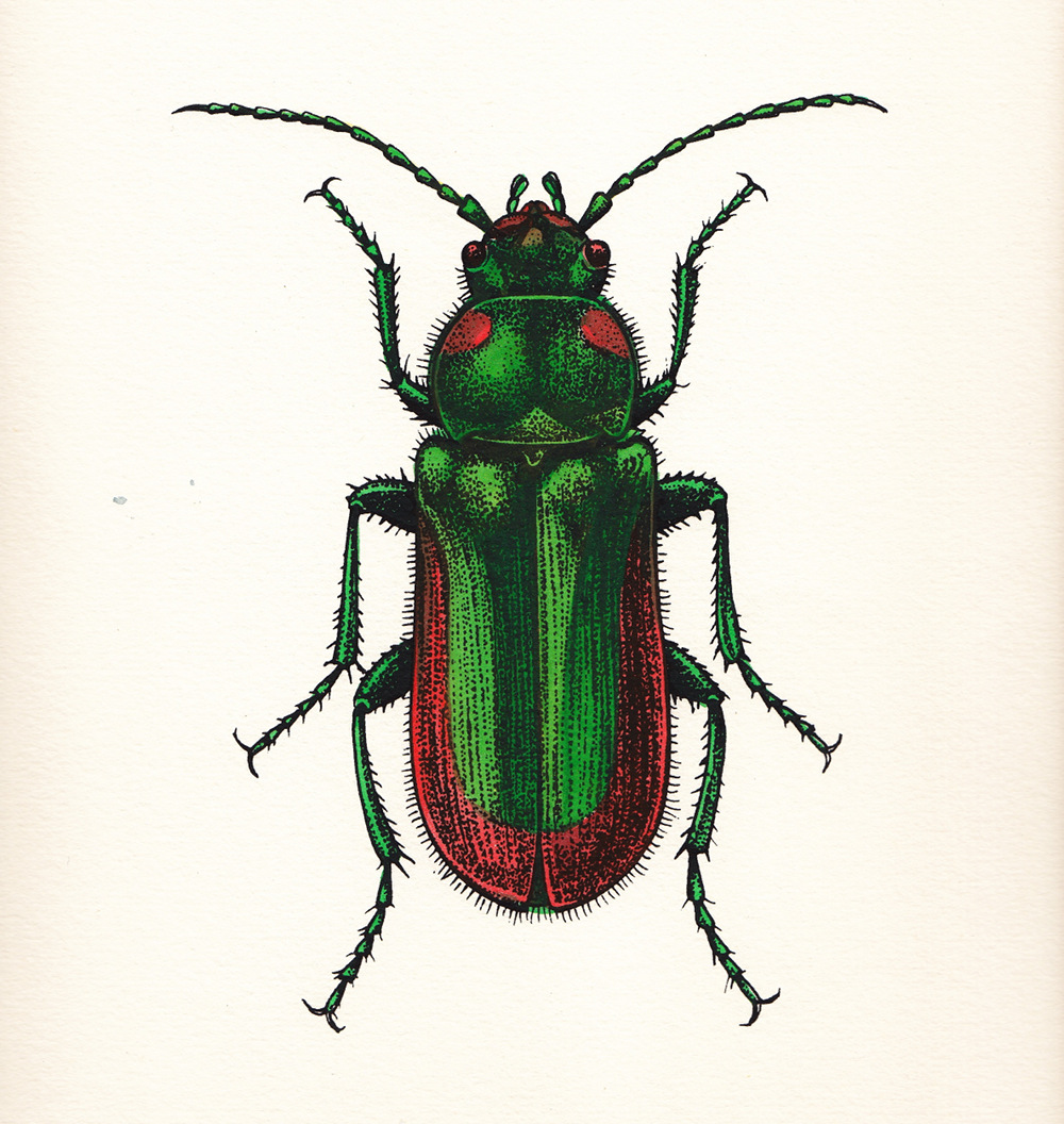 Renate Wendt-Schiller "Malachidenkäfer" · 1984 · signiert · kolorierter Siebdruck · Bildmass ca. 26 x 26 · Blattmass 36,5 x 32,5 · 75,- €