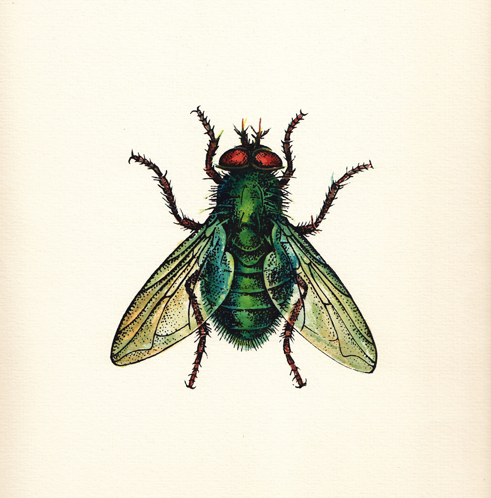 Renate Wendt-Schiller "Kaisergoldfliege" · 1988 · signiert · kolorierter Siebdruck · Bildmass ca 26 x 26 · Blattmass ca 36,5 x 32,5 · 75,- €