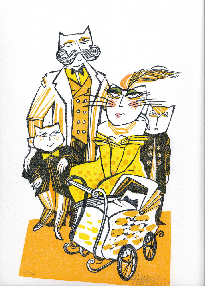 Tobias Trauzettel o.T. "Katzenfamilie" · 2011 · 7/12 · Linolschnitt · Blattmass: 35,8 x 24,8 · 90,- €