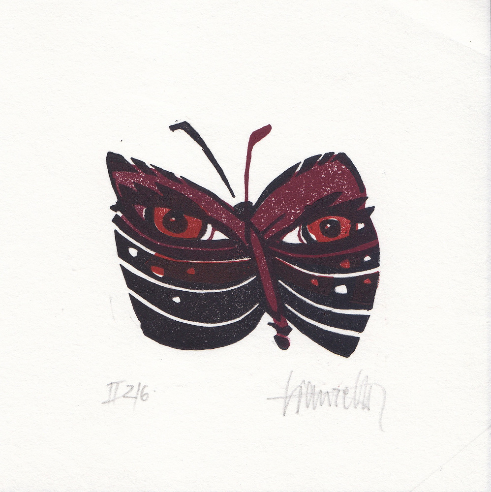 Tobias Trauzettel o.T. "Schmetterling klein" · 2009 · II 2/6 · signiert · Linolschnitt farbig · Blattmass ca 14 x 14 · 35,- €
