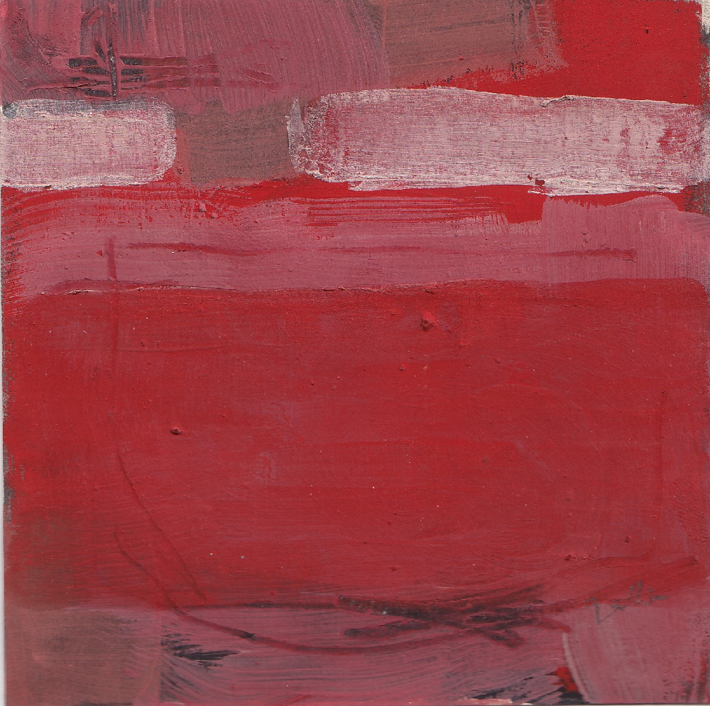 Ute Gallmeister "Streifen auf Rot" 2007, signiert, Mischtechnik auf Papier, Bild: 11,8 x 11,9 cm, Blatt: 42 x 29,5 cm, 185,- €