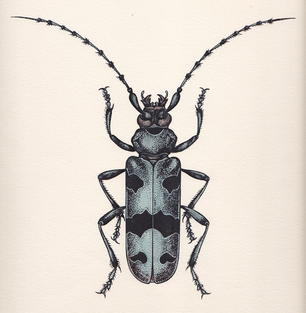 Renate Wendt-Schiller "Großer Rosskäfer" · 1982 · signiert · kolorierter Siebdruck · Bildmass ca. 26 x 26 · Blattmass 36,5 x 32,5 · 75,- € |