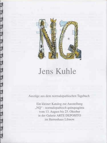 Jens Kuhle Auszüge aus dem normalopathischen Tagebuch Ein kleiner Katalog zur Ausstellung "NQ" in der Galerie arte deposito 2011 8,- € in der Kunsthandlung erhätlich