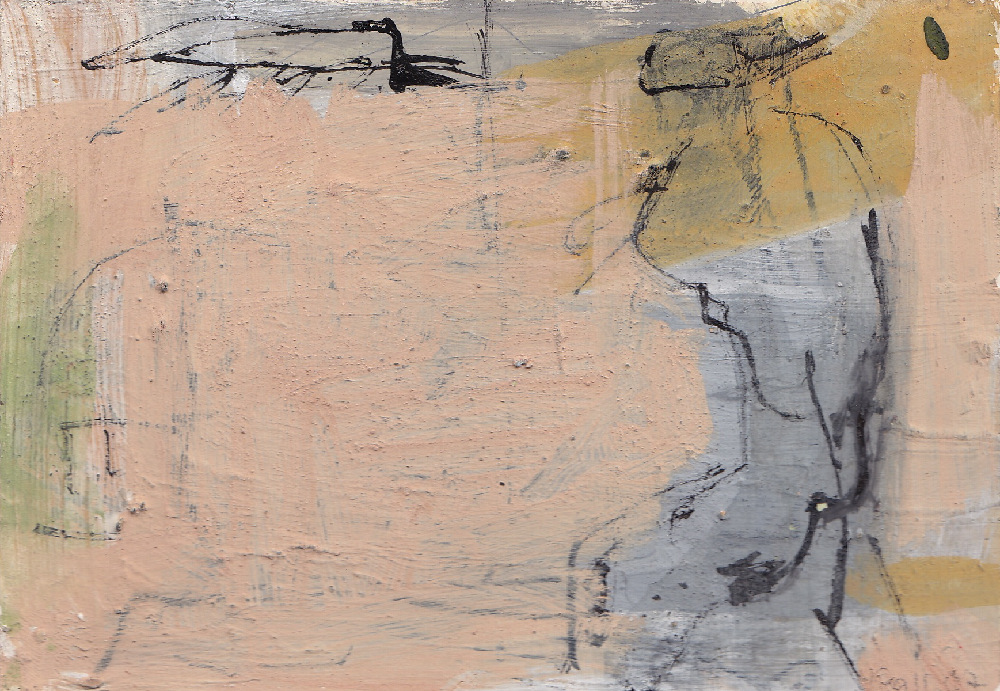 Ute Gallmeister "Wartend" 2005, signiert, Mischtechnik auf Papier, Bild: 10,4 x 14,7 cm, Blatt: 42 x 29,5 cm, 185,- €