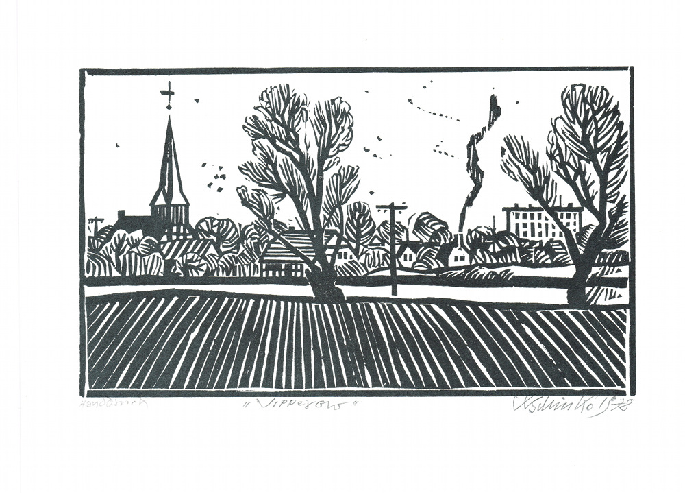 Werner Schinko "Vipperow" 1978, signiert, Handdruck, Blattmass: 24 x 22 cm, Bildmass: 20 x 11,5 cm, 100,- €